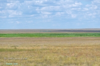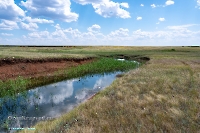 Степное озеро среди увалов. Характерная околоводная растительность.