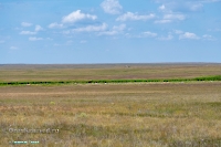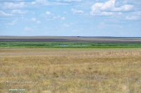 Степное озеро среди увалов. Характерная околоводная растительность.