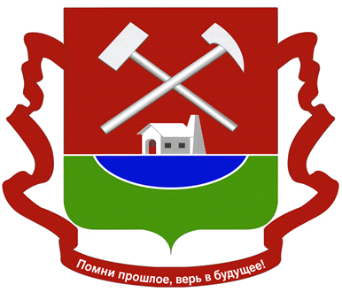 Описание герба: В червленом (красном) поле расположены серебряные молот и поверх него обушок, сопровождаемые внизу серебряной медеплавильной печью (в виде здания, соединенного слева с дымоходом), стоящей на зеленой оконечности (нижней части щита), тонко окаймленной серебром и обремененной выходящим сверху краем лазоревого (сине-голубого) шара (диска), а также тонко окаймленного серебром. Девиз «Помни прошлое, верь в будущее!» начертан серебряными литерами на червленой ленте.