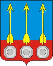 Герб ЗАТО посёлок КомаровскийОписание герба: В лазоревом (синем, голубом) поле оконечность - и поверх неё - три золотые стрелы (она подле другой); каждая сопровождена в оконечности серебряным тарчем.