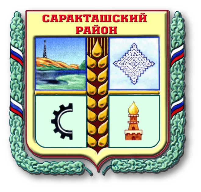 Поэтому главная фигура в щите герба Саракташского района – прялка, один из инструментов пуховязальщиц, символизирующий их трудоемкую и кропотливую работу. Боковики щита воспроизводят кайму оренбургского пухового платка, на них в условном виде воспроизведены некоторые традиционные узоры оренбургских пуховниц – «змейка» и «кошачьи лапки».