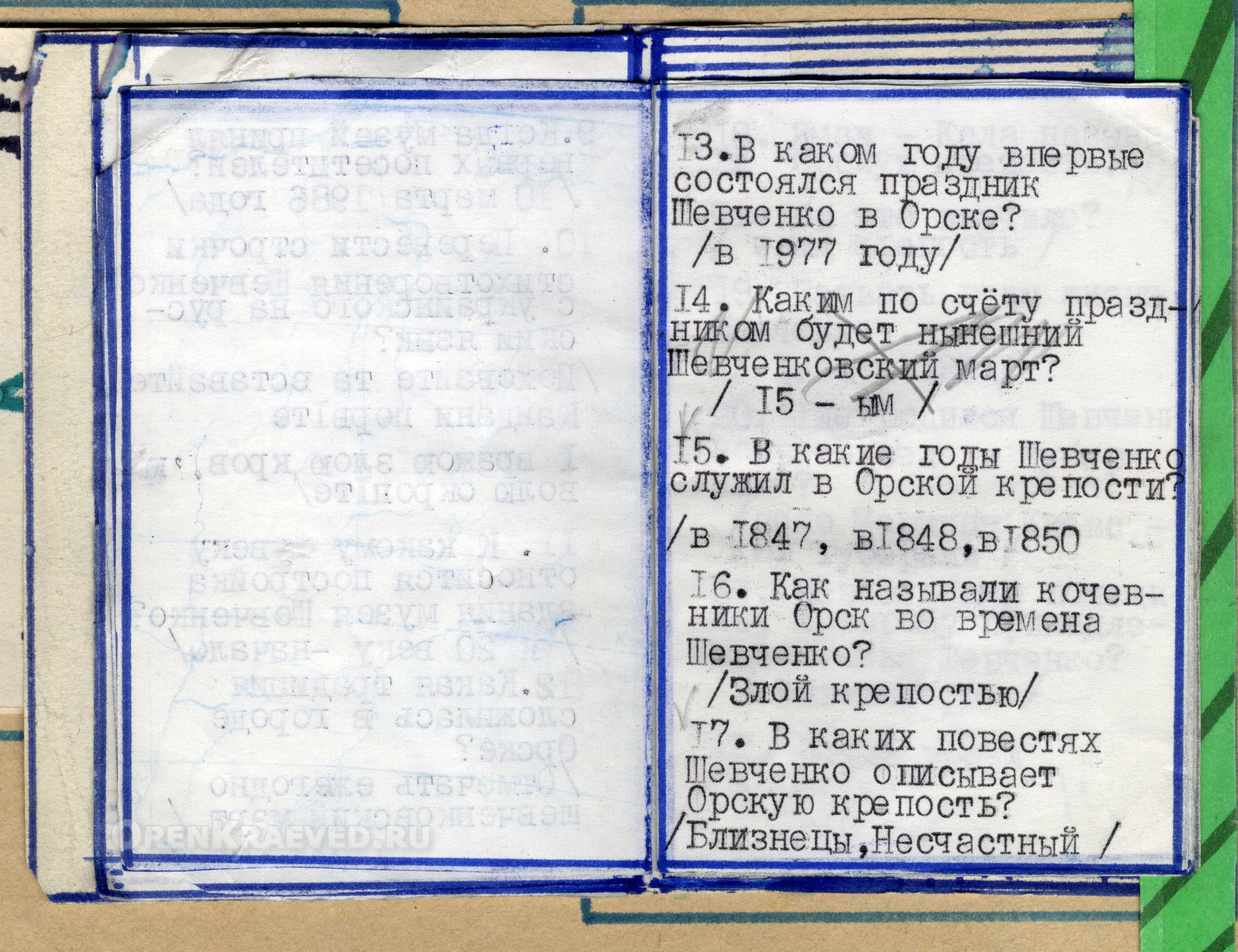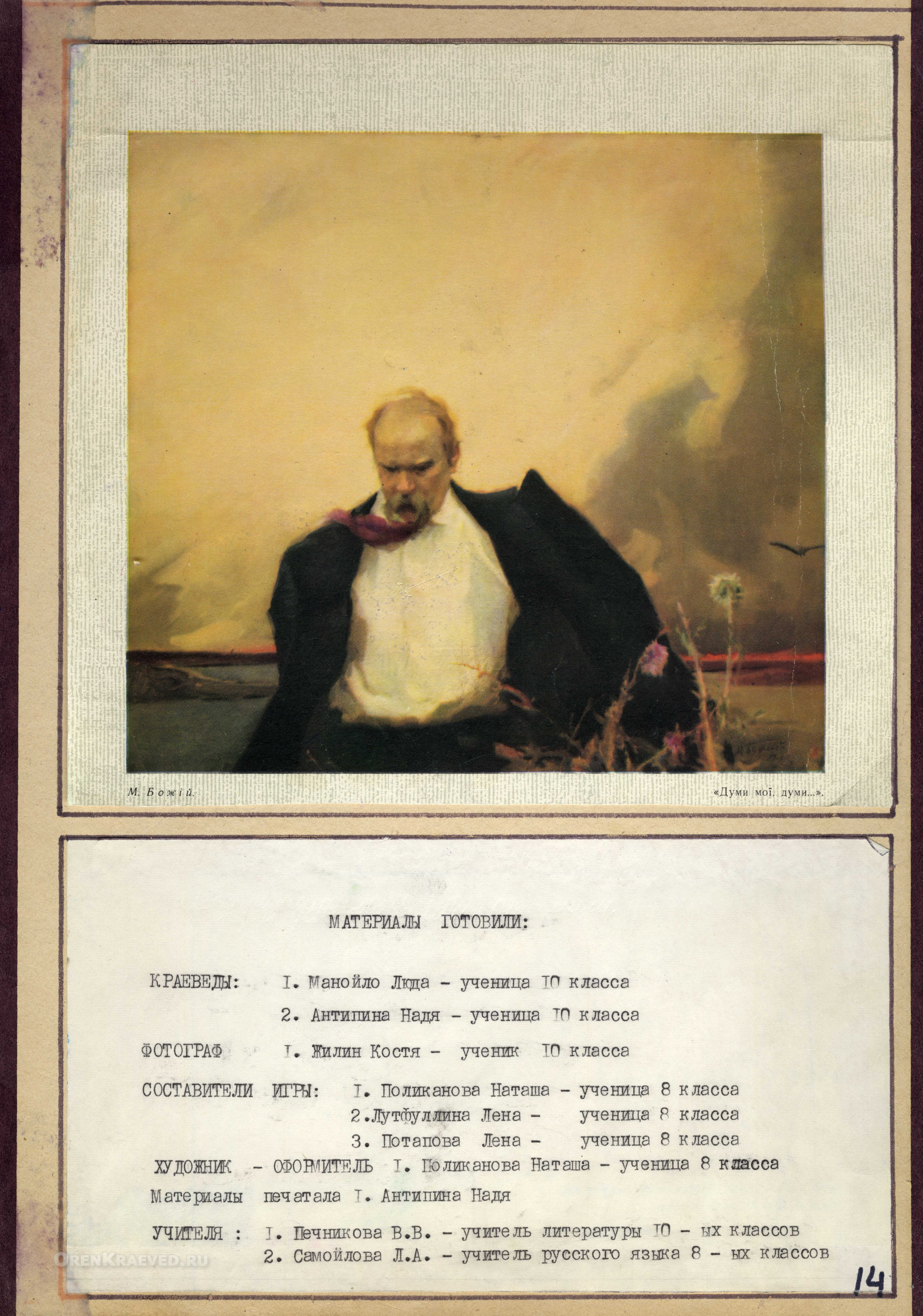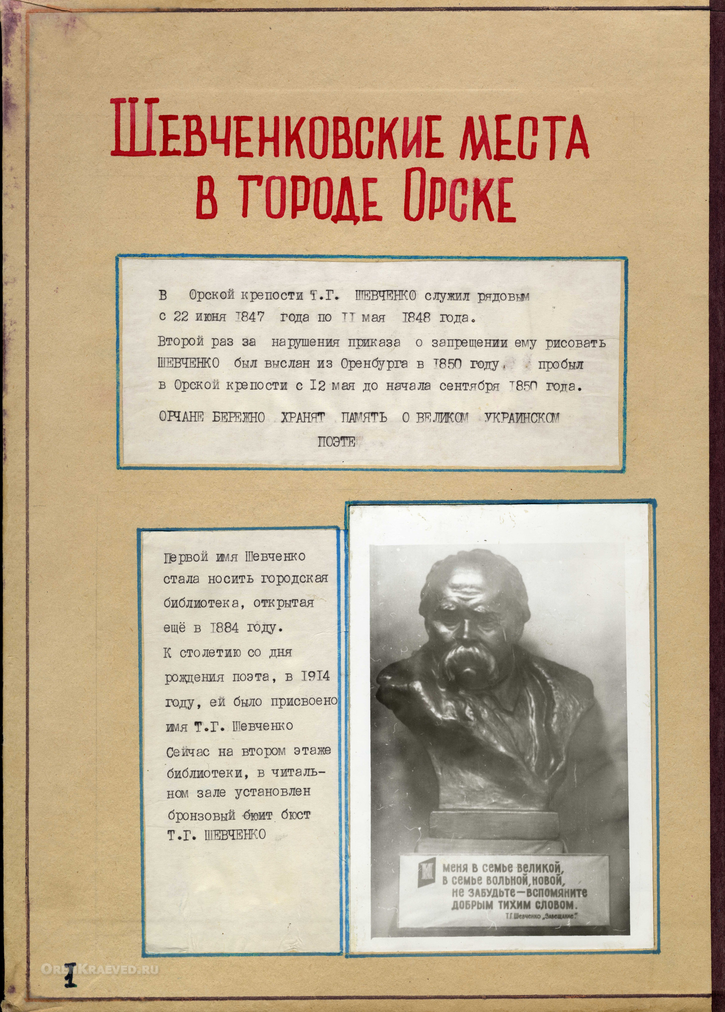 Учебное пособие «Тарас Григорьевич Шевченко в Орской крепости. Орск. Средняя школа № 15»