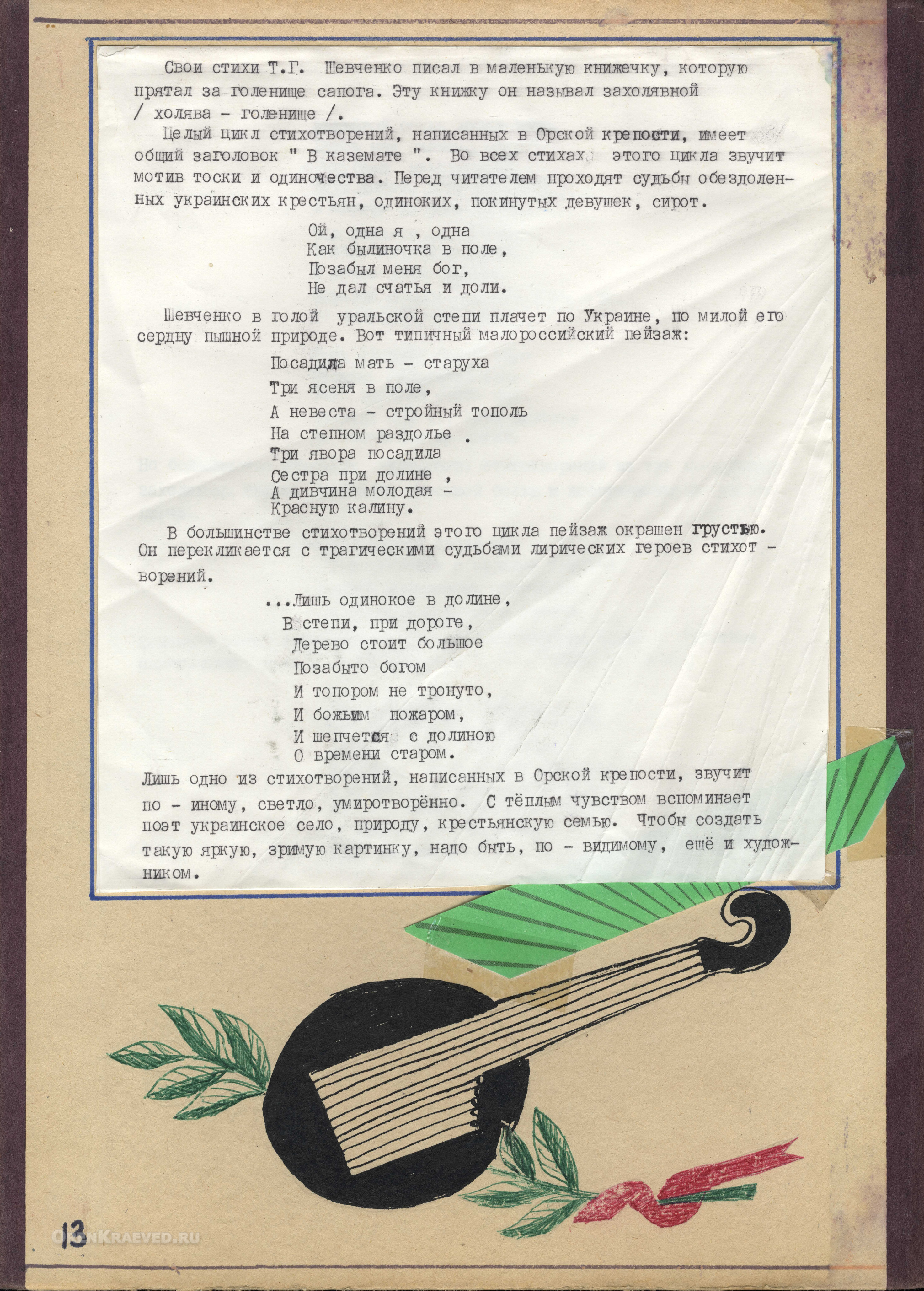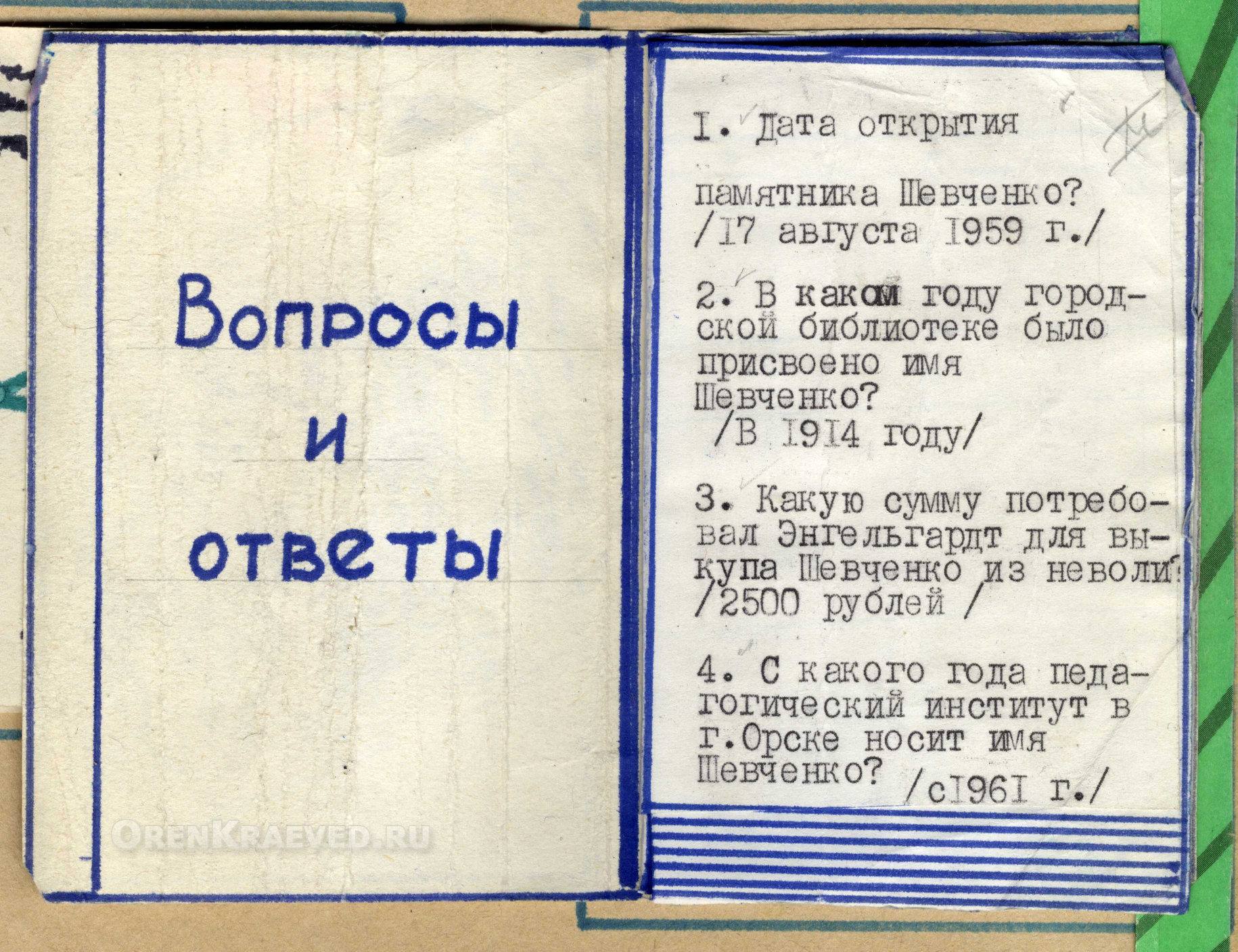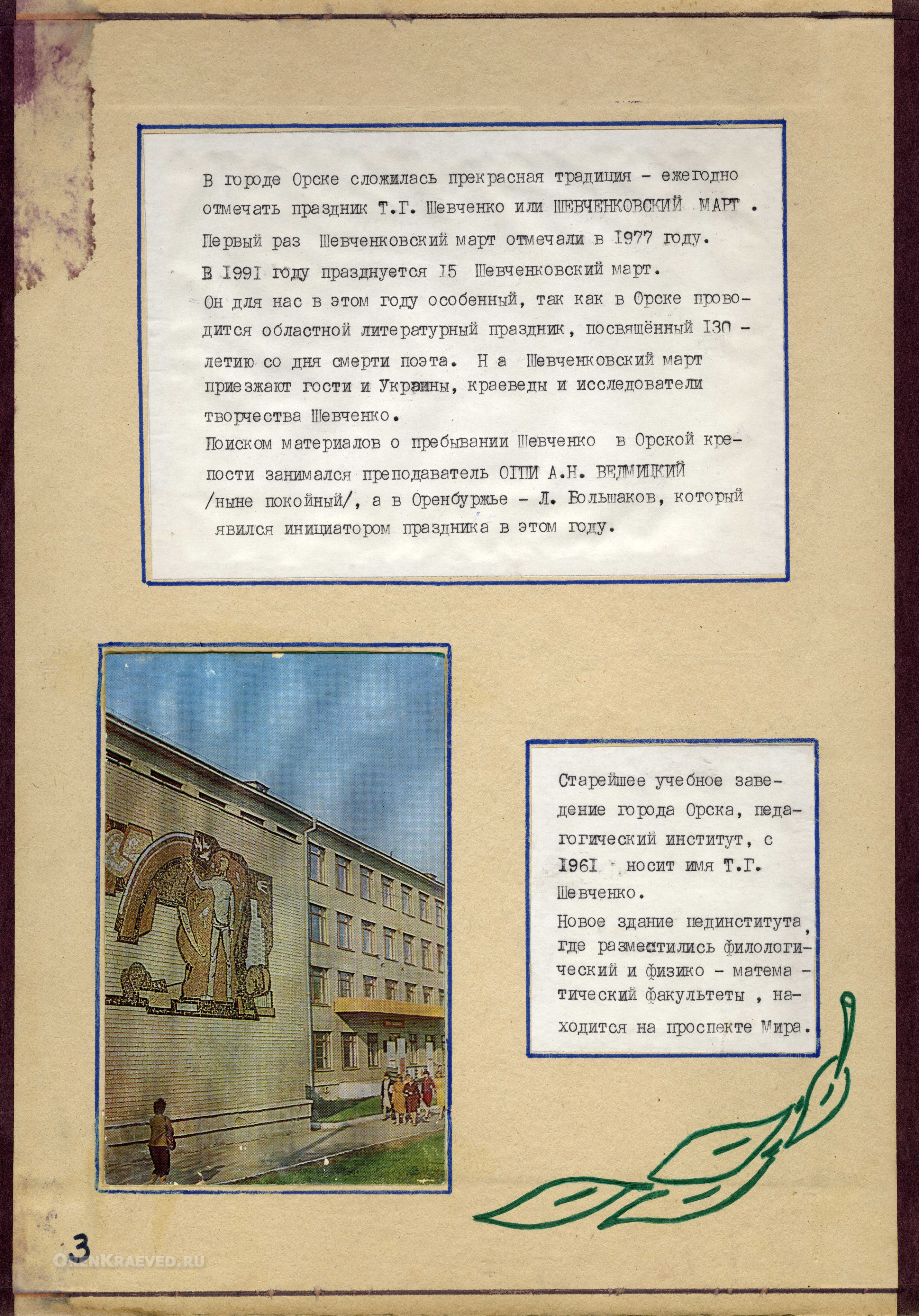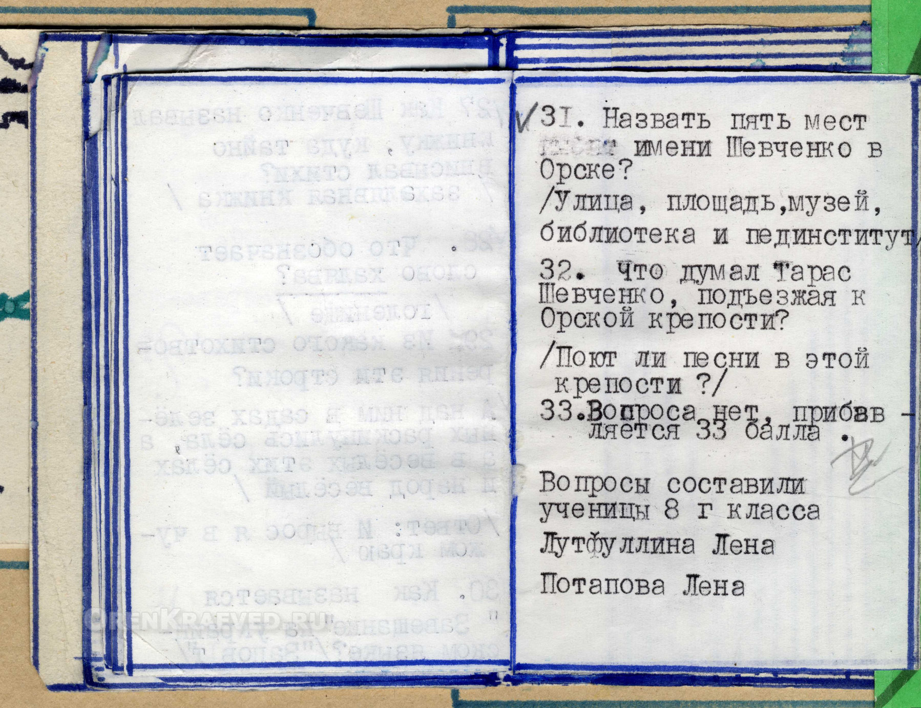 Учебное пособие «Тарас Григорьевич Шевченко в Орской крепости. Орск. Средняя школа № 15»