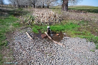 Безымянный родник к северу от трассы Орск – Оренбург. Вода поступает из железной трубы с приваренным носиком. Используется местными жителями для набора воды.