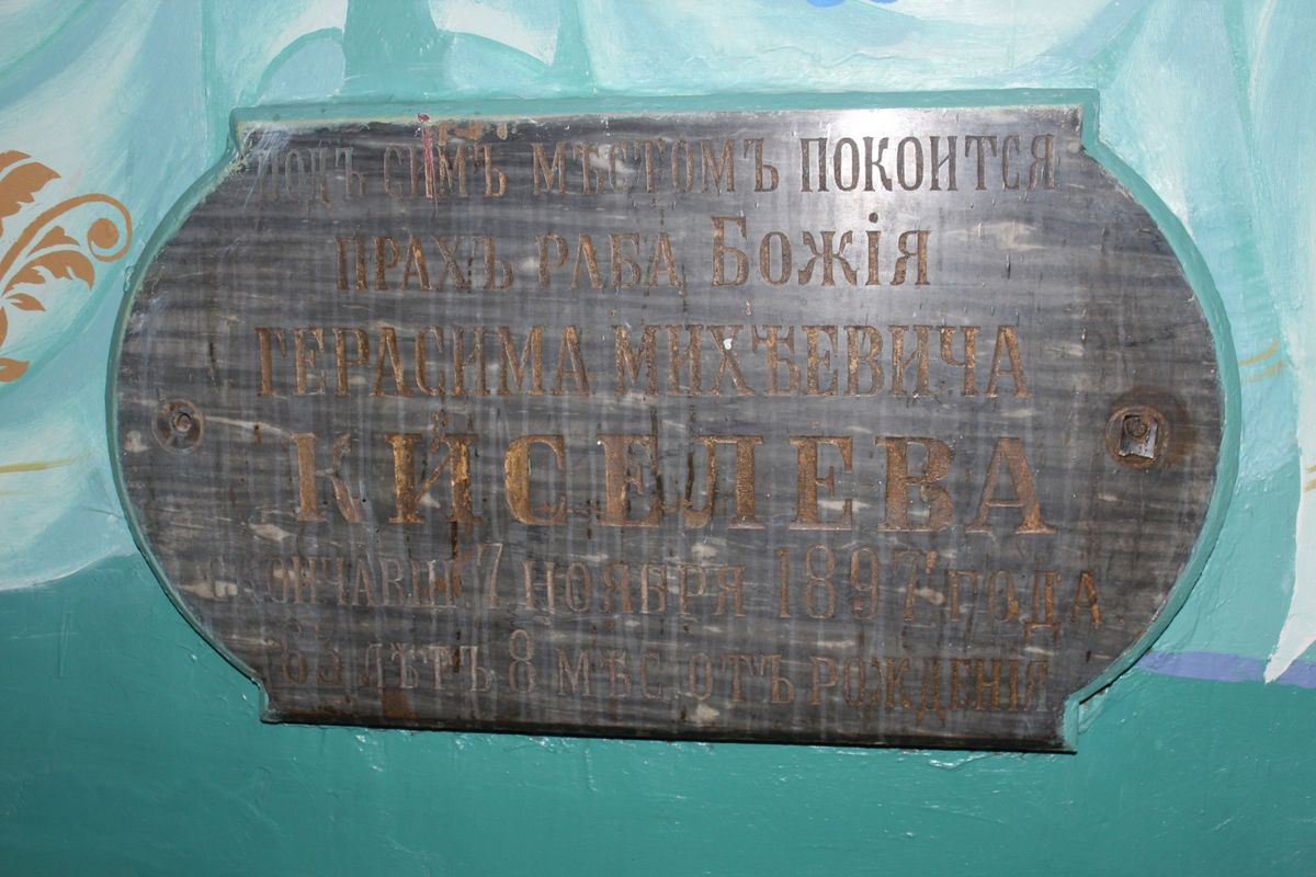 Табличка на могиле Герасима Киселева во Всехсвятской церкви города Бузулука