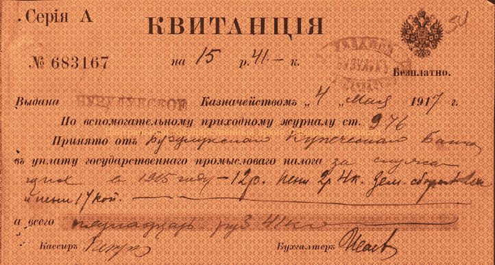 Квитанция Бузулукского купеческого банка