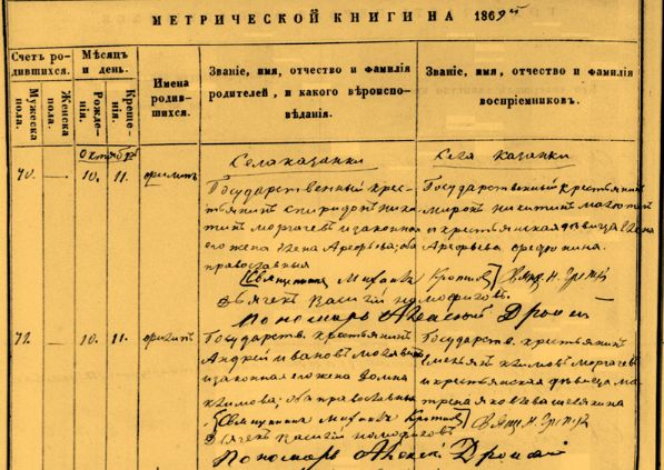 Запись о рождении Филиппа Малявина в метрической книге села Казанка Бузулукского уезда