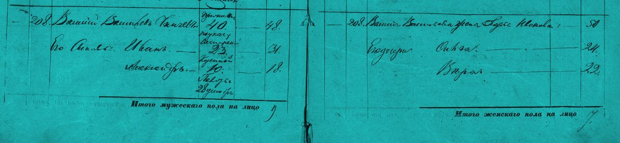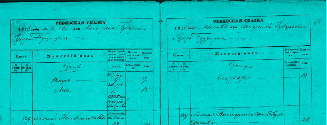 Запись о Чиняевых в ревизской сказке города Бузулука 1858 года