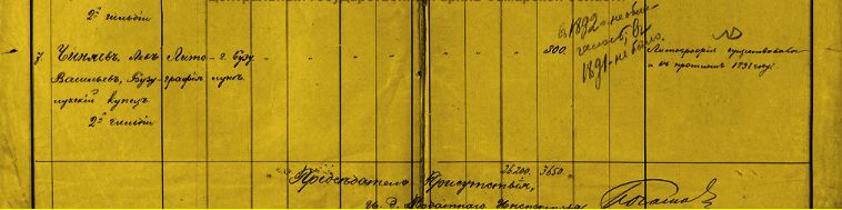 Запись о налоге с оборота купца 2-й гильдии Льва Васильевича Чиняева