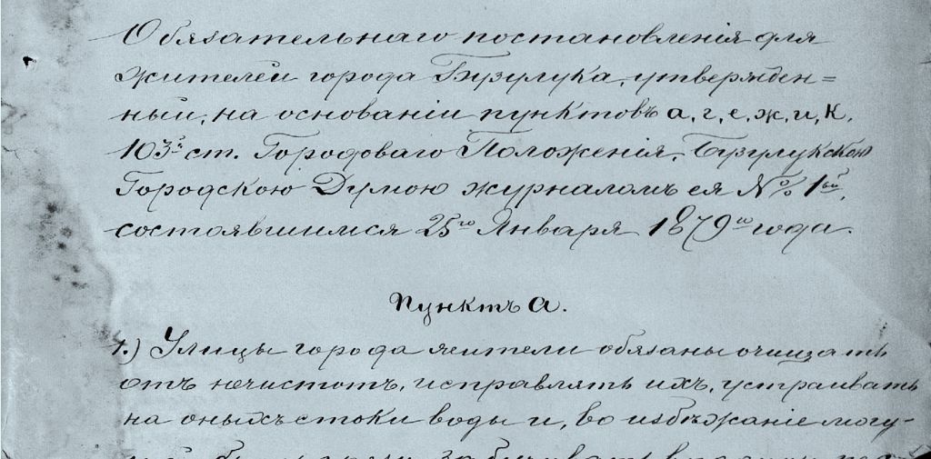 25 января 1879 года Бузулукская городская дума приняла обязательное постановление для жителей города, которое заложило основы управления городским коммунальным хозяйством и осуществления контроля за соблюдением элементарных санитарных норм.