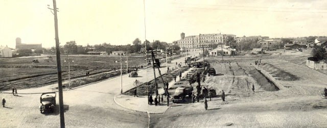 Не совсем понятно, где это… возможно, это участок Паркового проспекта (Госпитальная) в сторону к центру города, от здания музыкальной школы на сторону парка им. Кирова…или же вид со стороны ул. Цвилинга (бывш. Телеграфная) на тот же парк.