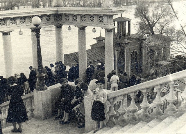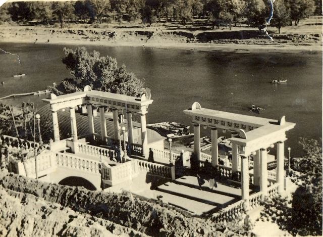 Примерно 1960-65 гг. Строительство спуска к реке Урал со стороны набережной. Судя по низкому уровню воды в реке, можно предположить, что съемка проводилась в июле-августе.