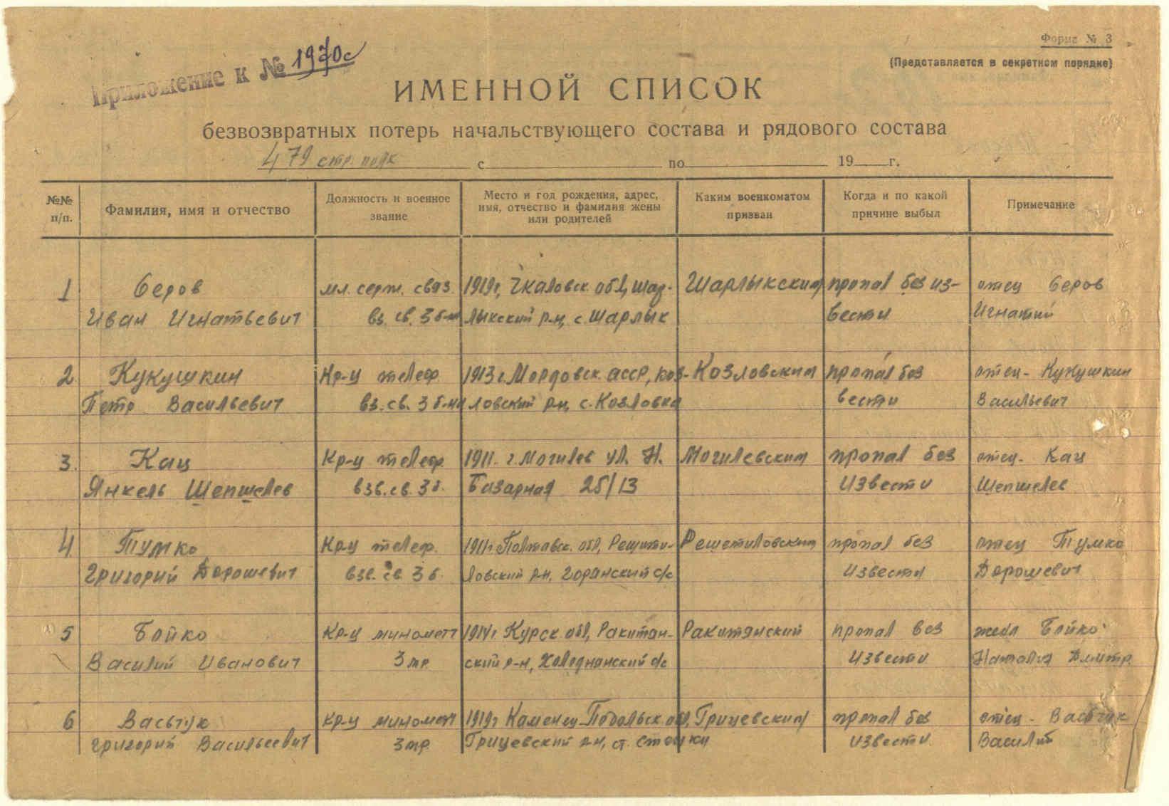 - МАКСИМОЧКИН ВАСИЛИЙ ЕГОРОВИЧ, 1923 г.р., родился с.Шарлык Оренбургской области, призван Шарлыкским РВК, красноармеец 111 СВ, убит в бою 15 августа 1942 г. (ЦАМО Ф.58 Д.818883 Д.1832)