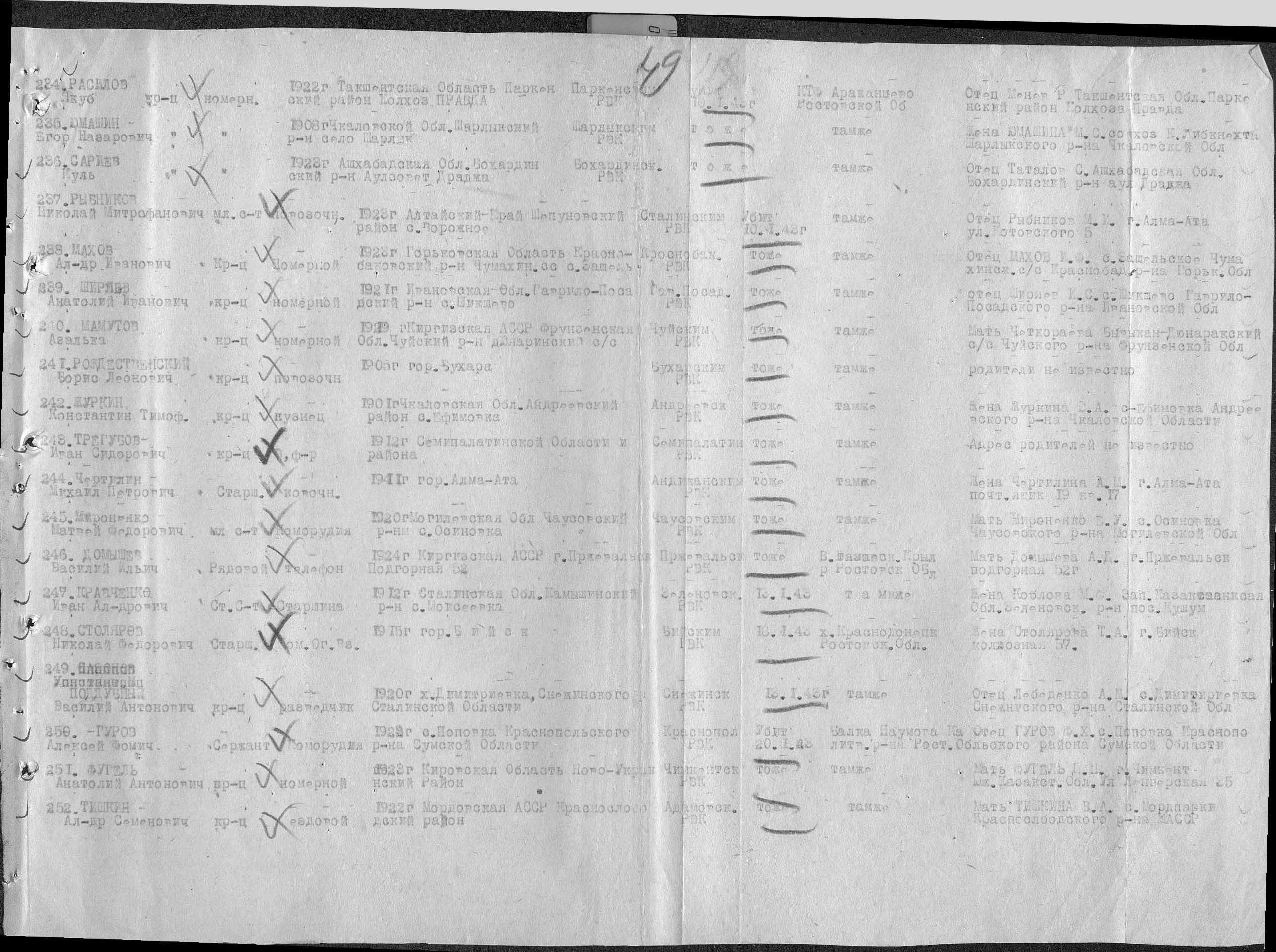 - МАСАЛЬСКИЙ АЛЕКСАНДР АЛЕКСЕЕВИЧ, 1901 г.р., родился с.Шарлык Оренбургской области, призван Шарлыкским РВК, красноармеец 353 СД, пропал без вести 17 июля 1942 г. в районе д.Орехово Ворошиловоградской области. (ЦАМО Ф.58 ОП.818883 Д.1201)
