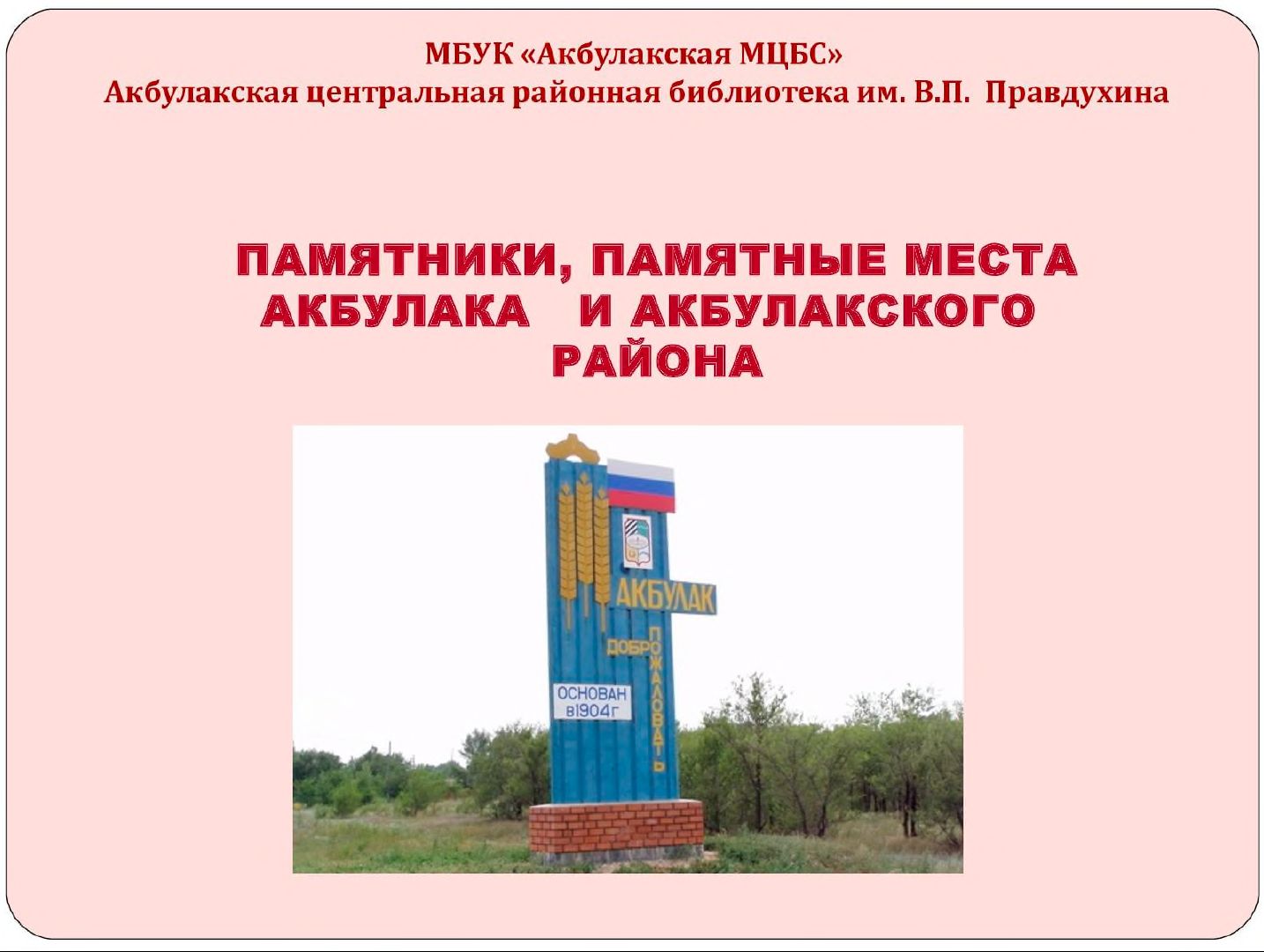 МБУК «Акбулакская межпоселенческая ЦБС» Акбулакская центральная библиотека им В.П. Правдухина.