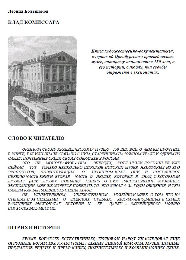 Книга художественно-документальных очерков об Оренбургском краеведческом музее, которому исполняется 150 лет, о его истории, о людях, чьи судьбы отражены в экспонатах.