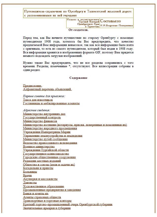Книга является повторным изданием произведения П.Д. Райского — «Путеводитель по гор. Оренбургу с очерком его прошлого и настоящего, иллюстрациями и планом». Оренбург, Губернская типография, 1915 г.