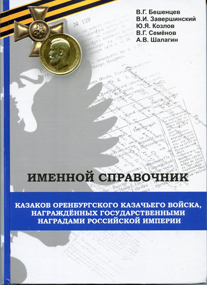 Настоящее издание посвящено казакам первого (Оренбургского) военного отдела Оренбургского казачьего войска. Справочник составлен на основе войсковых, армейских и полковых приказов, а также семейных архивов потомков казаков, награжденных государственными наградами Российской империи.