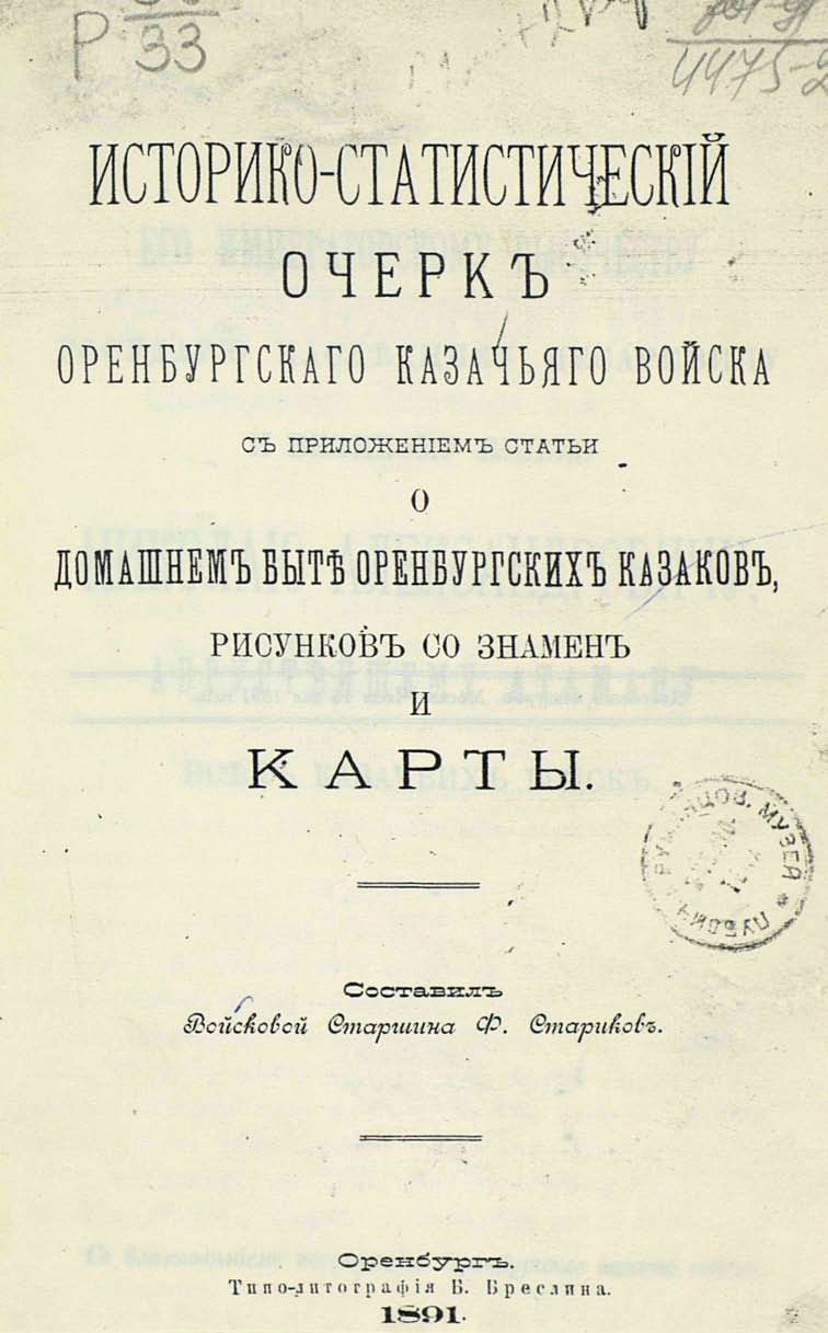Издание Оренбургского казачьего войска. Оренбург. Типо-литография Б. Бреслина. 1905.