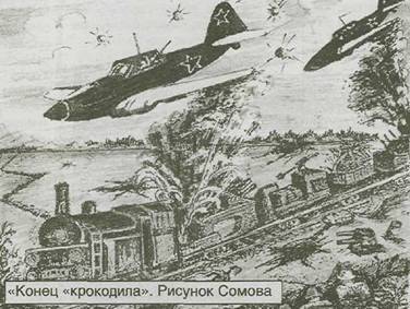 Перевел самолет в пике и под плотным зенитным огнем нацелился на паровоз стремительно надвигавшегося бронепоезда. Если б даже вражеский снаряд попал в Ип, безотказный самолет все равно врезался бы в цель.