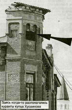 Рассказала Тамара Васильевна и о деятельности самого богатого купца в Оренбурге Хусаина Хусаинова. У него были две кожевенные фабрики, продукция которых славилась не только в России, но и за рубежом. Работники фабрик жили в общежитии на нынешней улице Кобозева (сейчас там расположен магазин «Охота»). Со временем к фабрике пристроили канцелярию с башенкой и курантами (угол Кирова и Телеграфного переулка).