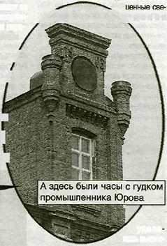 Но самыми оригинальными были куранты промышленника Юрова. Он выстроил пятиэтажное каменное здание мельницы и украсил его башенкой для часов с гудком. Механизм этот был очень дорог. А гудок по утрам будил всю округу. Его пронзительный звук помнит и сама Тамара Васильевна.