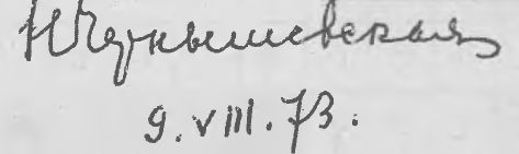Эту надпись сделала мне на память на своей книге «Повесть о Чернышевском» его внучка Нина Михайловна. Посмотрел я сейчас на этот автограф свежим взглядом - и только теперь понял, почему она написала не Н.М., а Н. Чернышевская. Сознательно или нет, но она, наверно, хотела, чтобы ее автограф всем походил на дедовский, с общим инициалом, только женское окончание -ая, тут уж ничего не поделаешь.