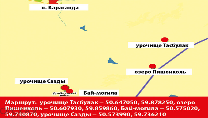 Последний населенный пункт на нашем пути носил славное название Караганда. По возвращении из путешествия на вопрос, где вы были, можно было в рифму ответить известной шуткой. В 6 километрах северо-восточнее поселка, на правобережье реки Ушкаты, расположена Приушкатинская комплексная степь. Это участок своеобразного пятнистого степного ландшафта, включающий в себя урочище глинистых такырчиков с грязевыми вулканчиками, солончаки, пятна щебнистых степей, пышные ковыльники и выходы кварцевых жил в виде отдельных сопок и нагромождения глыб. Частично все это просматривается и с левого берега реки, на котором мы находились.