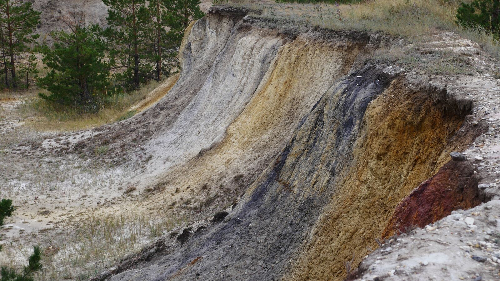 Пестроцветные стены карьера близ Андрианопольского бора привлекают внимание своей яркостью