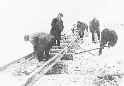 Весной 1943 года начали строить и капитальную железнодорожную ветку, которая должна была связать рудник с главной магистралью железной дороги. И опять меня поражает, какими темпами велось строительство. Протяженность её составляла 15 километров, но усложнялось все тем, что необходимо было построить мост через речку. И это должен быть не просто деревянный мост, а настоящая инженерная конструкция с большим запасом прочности, выдерживающая многотонный состав с рудой и способная противостоять весеннему половодью реки, когда быстронесущийся поток её, состоящий из массы воды и льда, одолевал на своем пути любую преграду.