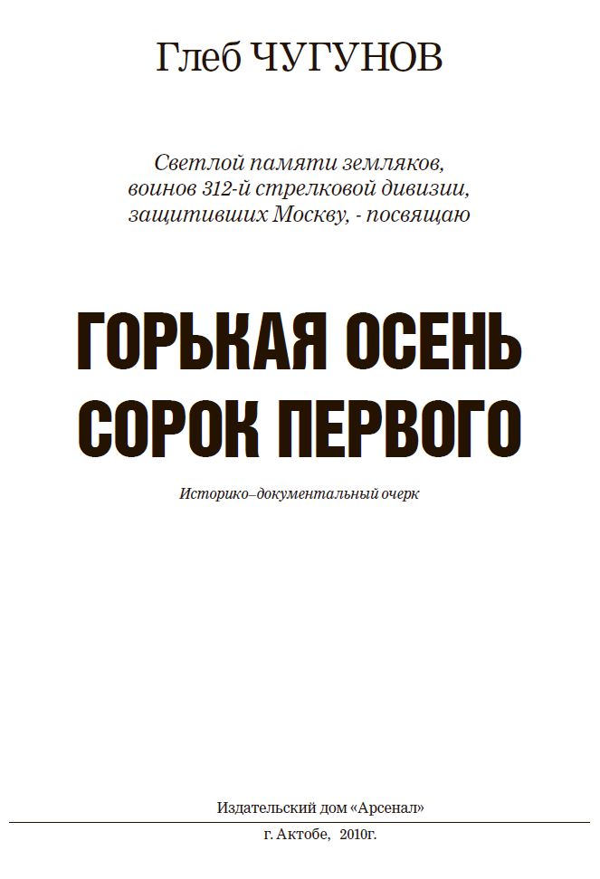 В процессе поисковых работ автор исследовал боевой путь 312-й стрелковой дивизии, сформированной в 1941 году в Актюбинске. И пришел к выводу, что актюбинская дивизия в 1941 году под Москвой совершила бессмертный подвиг, который по своему значению и сути нисколько не уступает подвигу 316-й дивизии И.В. Панфилова. Цель написания книги: увековечение памяти погибших защитников Родины, создание краеведческого пособия для молодежи, интересующейся историей Отечества.
