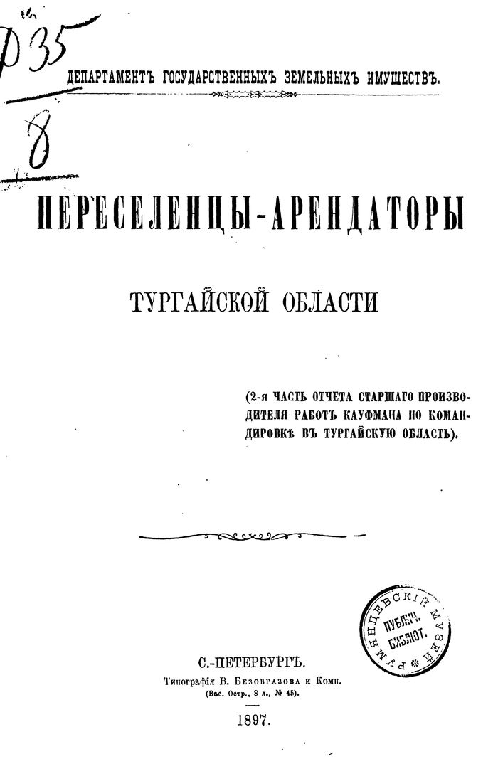 Напечатано по распоряжению Императорской Академии Наук. С.-Петербург, декабрь 1897 года.