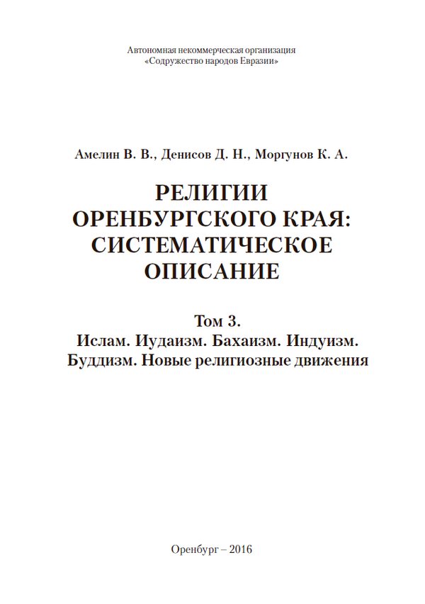 Третий том посвящён исламу, иудаизму, бахаизму, различным неоиндуистским течениям (Обществу Сознания Кришны, Шри Чайтанья Сарасват Матх, Сахаджа-Йоге, Ошо), буддизму, новым религиозным движениям (родноверию, Ата жолы, Анастасии, Радастее, Алля аят, саентологии). Издание адресовано учёным, специалистам в области государственного и муниципального управления, а также всем интересующимся религиозной жизнью народов Южного Урала.