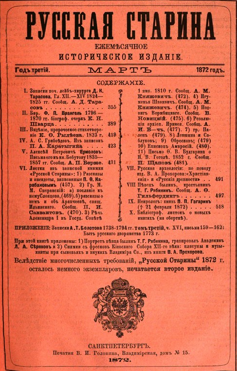 «Русская старина» март, 1872 г. стр. 355