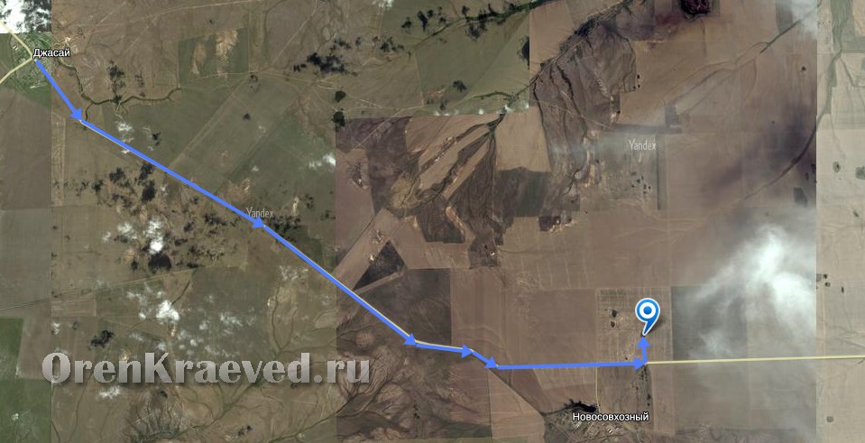 Из села Джасай двигаться по дороге в посёлок Обильный. В точке N51.31996° E60.63306° объект будет находиться в 800 метрах с северной стороны дороги.