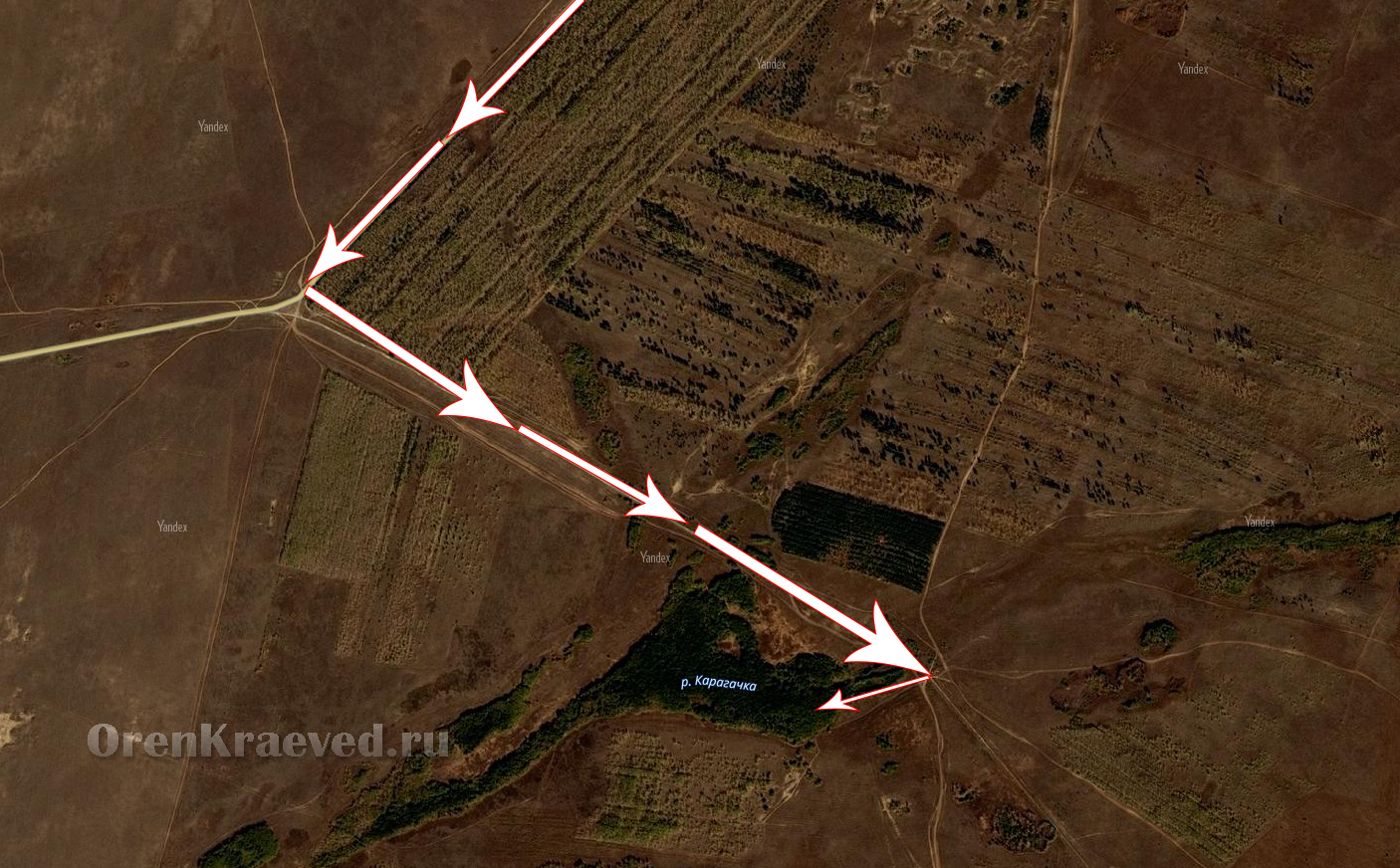 Из Адамовки двигаться в сторону Ясного. В точке N51° 24.113' E59° 56.680' свернуть на юго-восток.