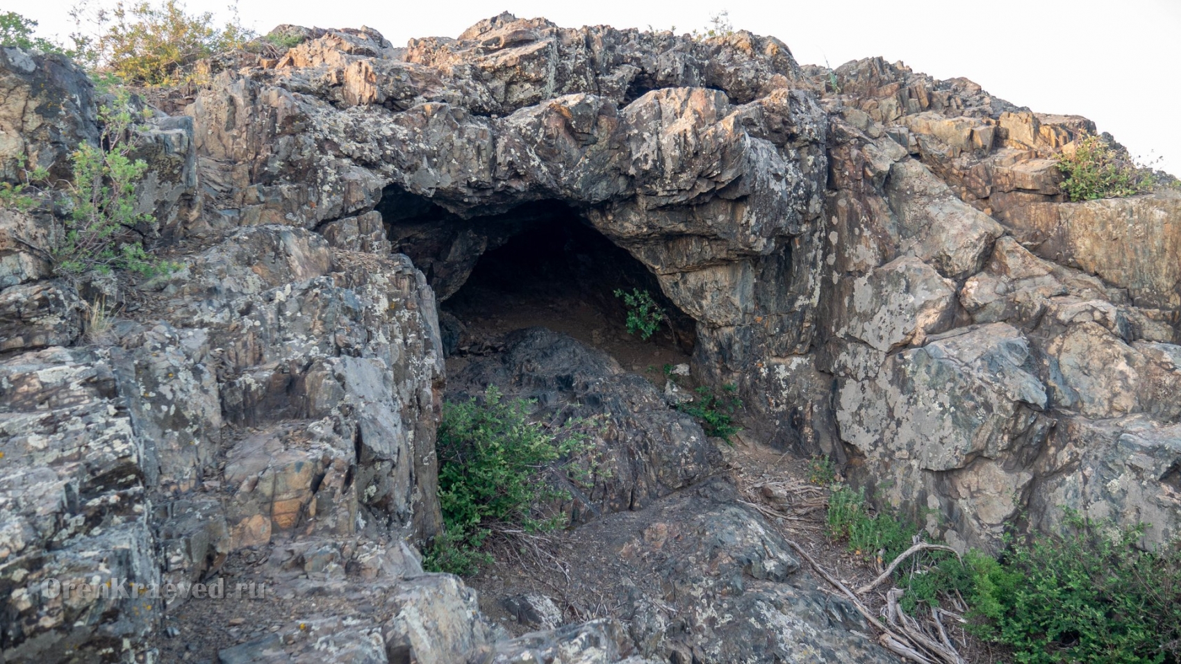 В правобережном обрыве, в его верхней части находится искусственная пещера-штольня длиной до 4 м, шириной 1,5 м, высотой 1,2 м. Штольня заканчивается вертикальным отверстием — трубой, выходящей на пологом склоне уже над обрывом. По мнению С.В. Богданова, эта штольня в XVIII–XIX веках была жилищем монаха-отшельника.