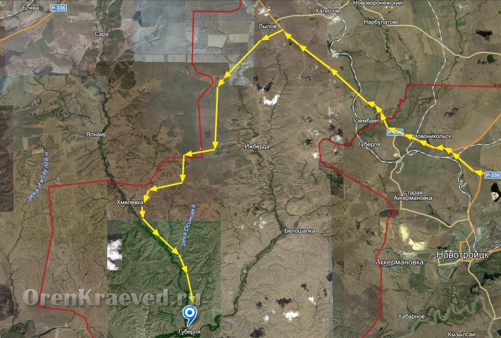 Из Орска по трассе Р-336 до поворота на посёлок Хмелёвка. Далее через посёлок Хмелёвка в сторону села Казачья Губерля.