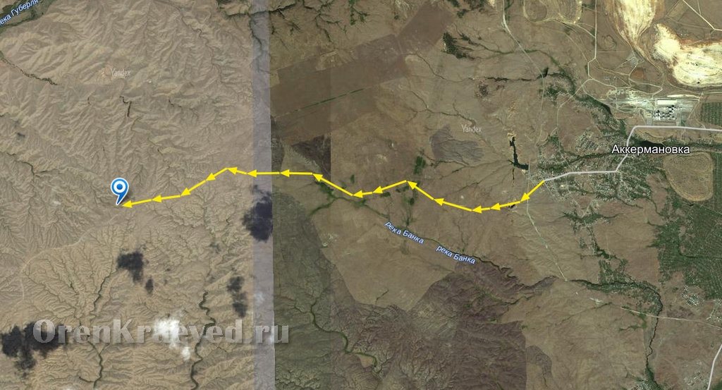 Из посёлка городского типа Аккермановки двигаться по старой Царской дороге в сторону села Казачья Губерля пока с правой стороны не появиться тригопункт (417,5 м.). Гора расположена за тригопунктом.