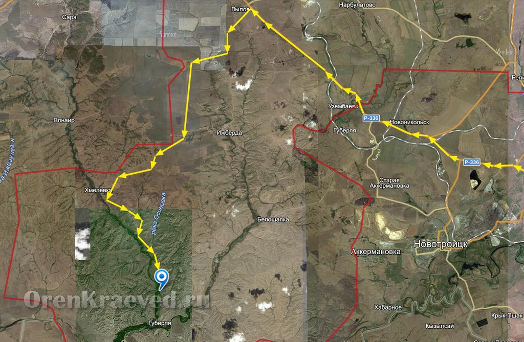 Из Орска по трассе Р-336 до поворота на посёлок Хмелёвка. Далее через посёлок Хмелёвка в сторону села Казачья Губерля.