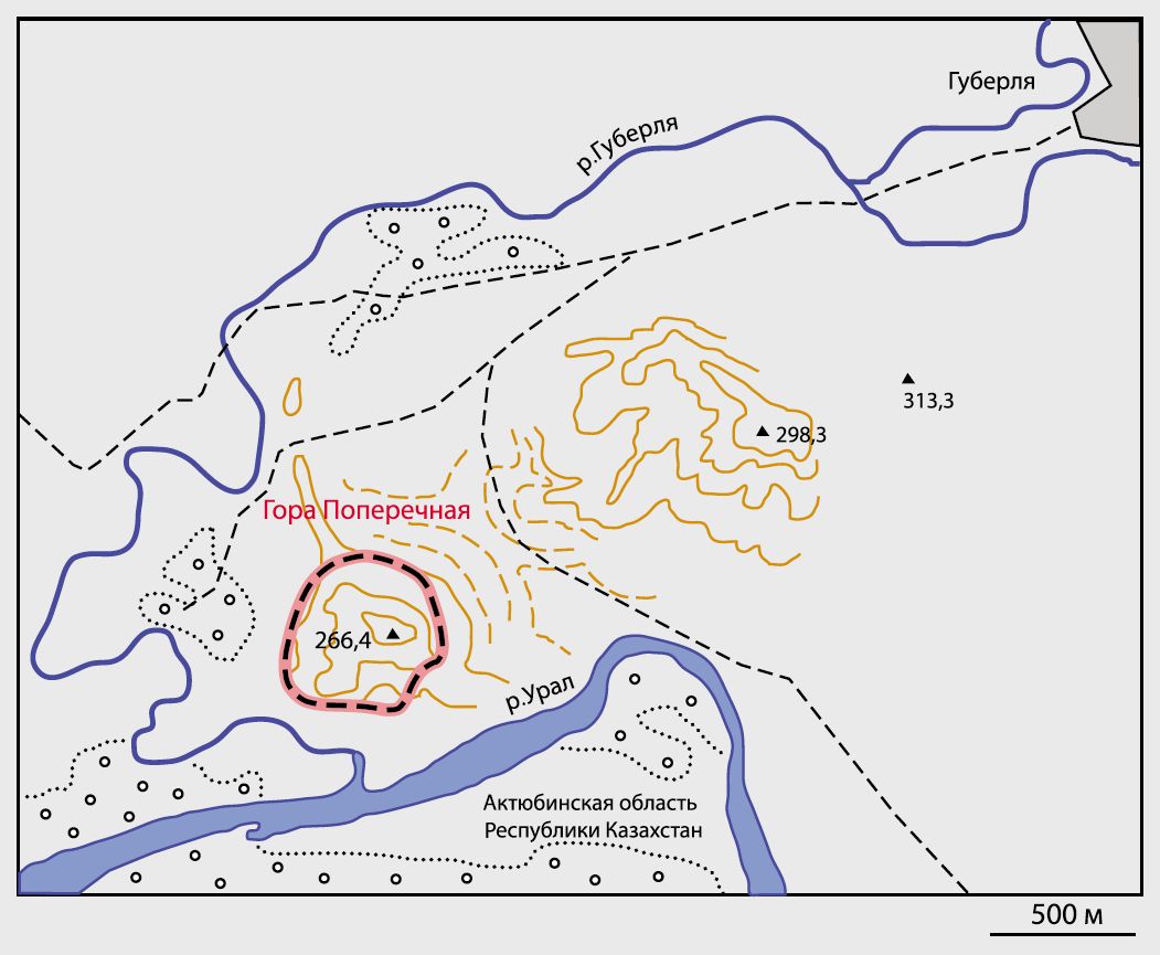 Эрозионно-останцовая гора (266,4 м) на правобережье реки Урал близ устья реки Губерли. Место первого обнаружения многих эндемичных и реликтовых растений Южного Урала. Описана в работах известного уральского ботаника, члена-корреспондента АН СССР П.Л. Горчаковского.