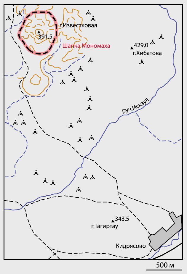 Кембрийские отложения Южного Урала, в том числе на горе «Шапка Мономаха» были открыты в 1931 г. Н.К. Разумовским, А.В. Хабаковым, И.В. Воиновой и др. Монографическое описание фауны из южноуральского кембрия сделано А.Г. Вологдиным (1938). Им в известняках установлен 31 вид археоциат, ряд видов описан впервые.