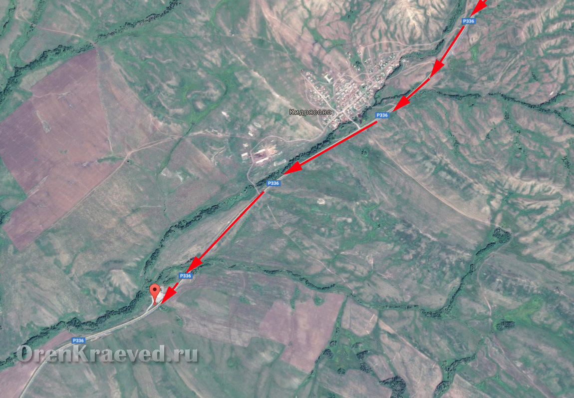 У автомобильной дороги Оренбург-Орск в 2 км к ЮЗ от села Кидрясово. ТП «Медногорское».