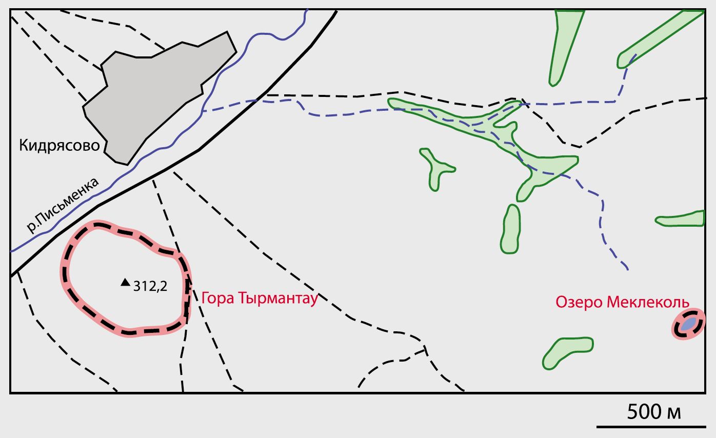 На горе Тырмантау в естественных выходах и в старых горных разработках (канавах, ямах, небольших карьерчиках) обнажается следующий геологический разрез. Внизу залегают темно-оливково-зеленые, с прослоями светло-серых, грубозернистые известковистые песчаники мощностью 38 м. Фауна – брахиоподы родов Obolus, Acrothyra, Syphonotreta, Anomocarrela, Рrogymphysurus, трилобиты. Выше обнажены белые и зеленоватые жерновые песчаники мощностью 22 м с такой же фауной. Следующий (верхний) горизонт кидрясовского разреза состоит из серых, зеленоватых и бурых глинисто-кварцевых, аркозовых, часто глауконитовых, иногда известковистых песчаников, в которых наряду с перечисленными выше брахиоподами обнаружены также Eoorhus и Billingsella. Мощность всего разреза горы достигает 150 м. Названная фауна ордовикского периода на Южном Урале впервые была обнаружена именно на г. Тырман-Тау.