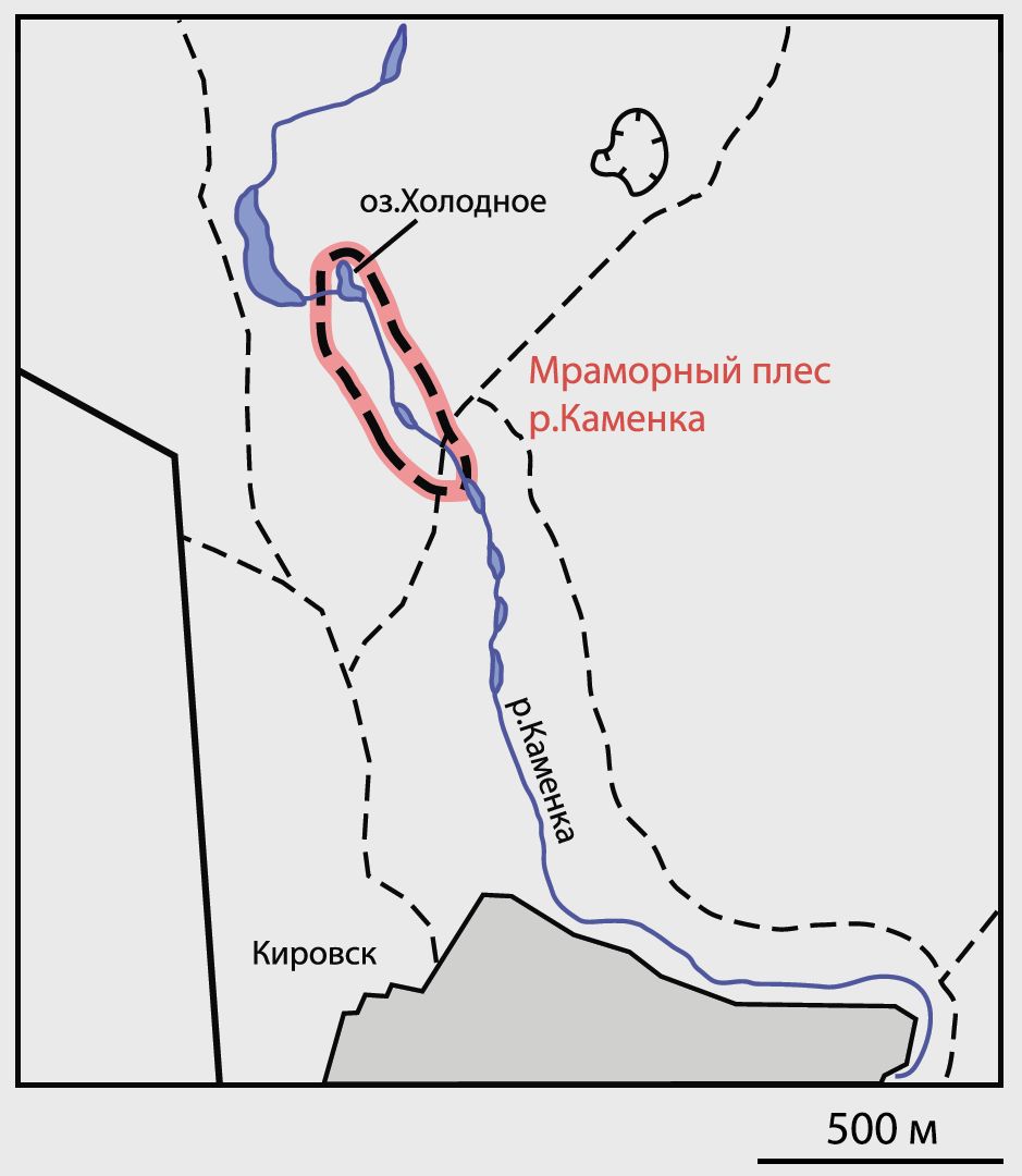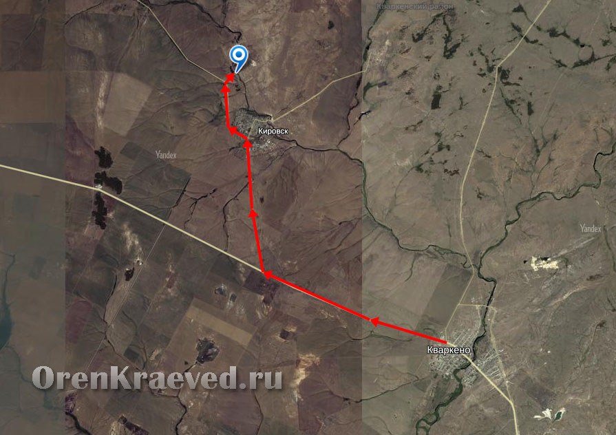 Из Кваркено двигаться в поселок Кировск. Обогнув посёлок с юго-западной стороны двигаться по дороге на север. Через 1,6 км свернуть на северо-восток и двигаться до берега реки Каменки.