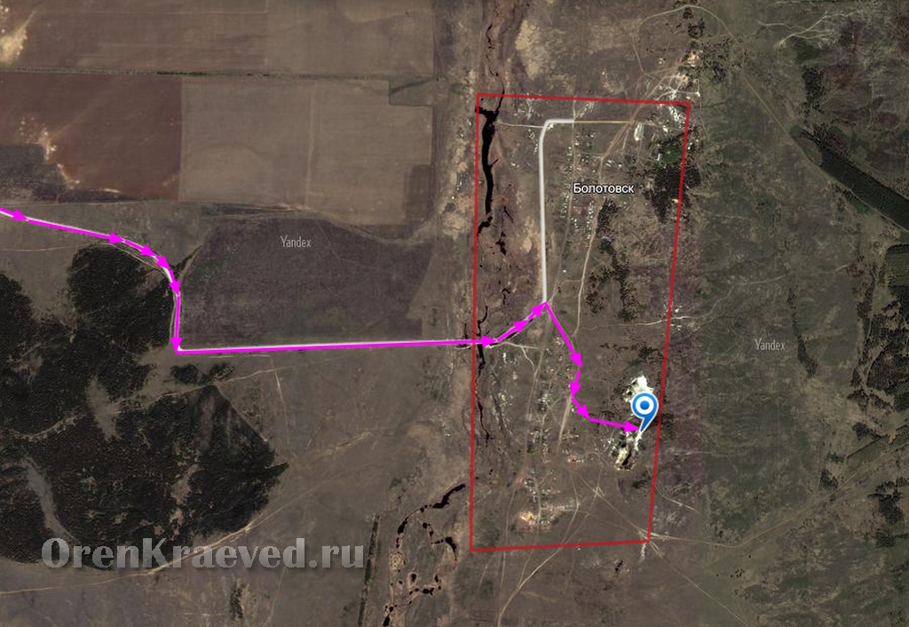 Из Кваркено до села Болотовск, далее через село на юго-восточную окраину.