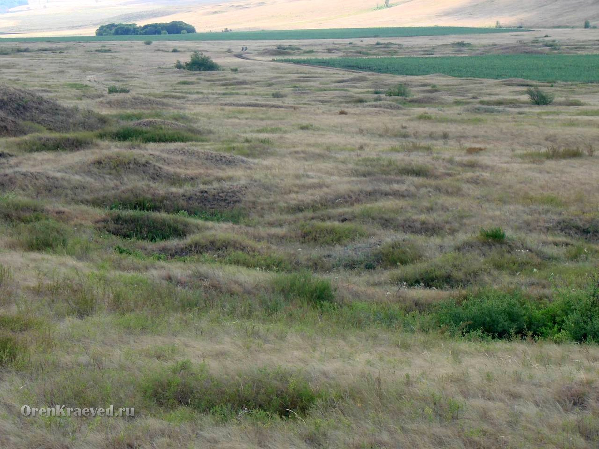Большая группа старых горных разработок. Отвалы чередуются с полузавалившимися шахтами, шурфами, дудками. В отвалах много штуфов омедненных песчаников, конгломератов и ископаемой древесины. Среди отвалов археологами обнаружено поселение рудокопов бронзового века. Уникален сформированный за тысячелетия горно-технический ландшафт. Есть слепые овраги длиной до 300 м, образовавшиеся за счет обрушения кровли над горизонтальными горными выработками.