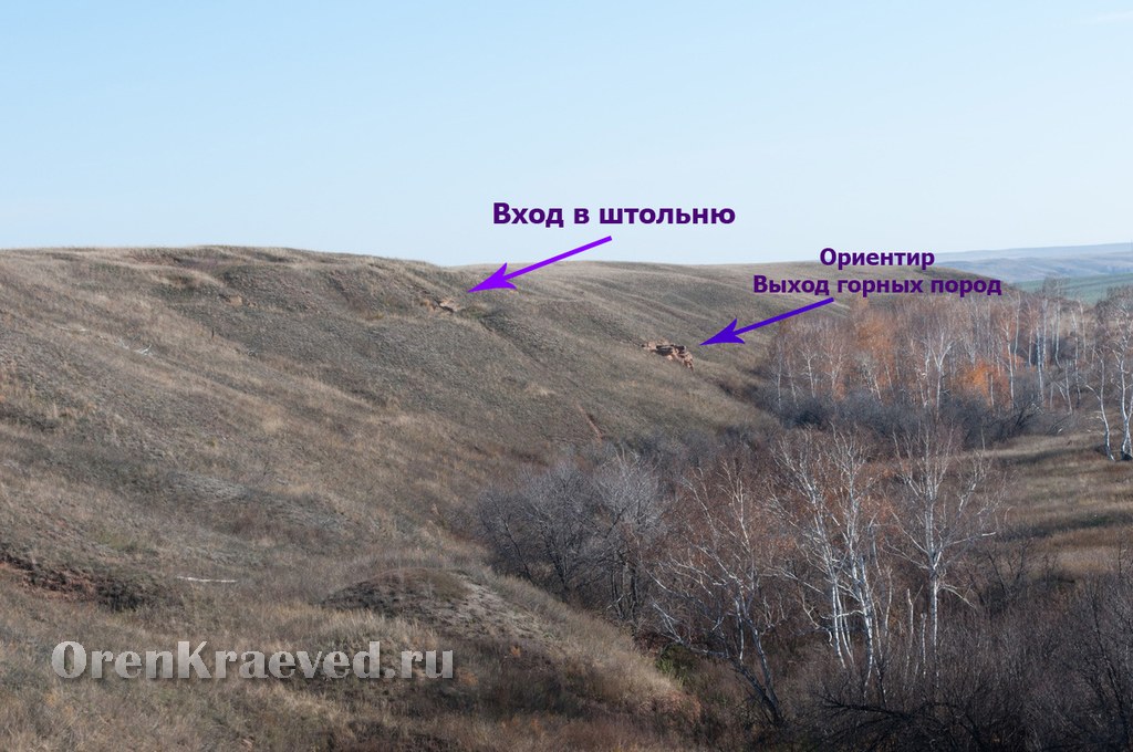 Короткая - Из Комиссарово двигаться в северо-западном направлении мимо телевышки вдоль полей до точки N52.31921° E54.74767°. Затем перейти Мясниковскю рощу в северо-восточном направлении и подняться по склону Мясниковского оврага до входа в штольню.