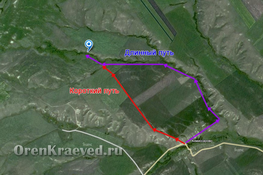 Из Оренбурга по трассе Р-240. Свернуть на Светлый. Далее через Уранбаш до Комиссарово. Из Комиссарово до Мясниковского меднорудного яра есть две дороги – длинная и короткая.
