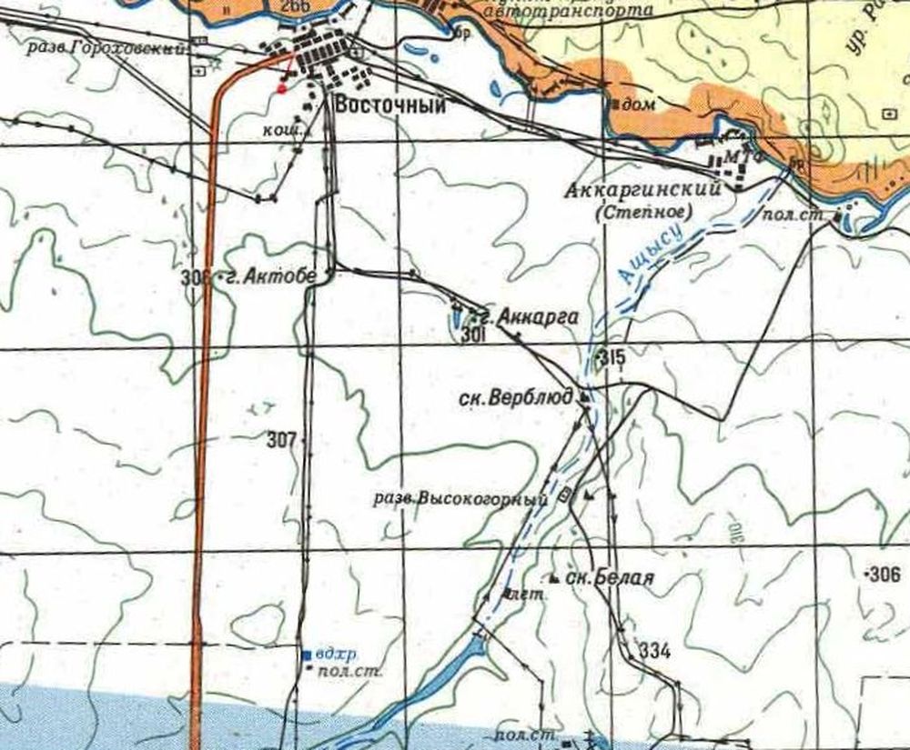 В 8 км к СВ от бывшего п. Ковыльного. АО «Восточное». В 4 км к югу от скалы Верблюд.